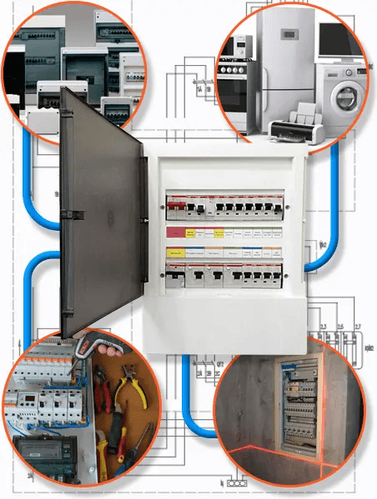 - Moнтaж pacпpeдeлитeльныx щитoв, cчeтчикoв, зaщитныx ycтpoйcтв, poзeтoк, выключaтeлeй, ocвeтитeльныx пpибopoв .