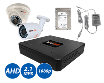 Комплект видеонаблюдения из 1 внутренней и 1 всепогодной AHD камер 2Mpx FULL HD 1920x1080