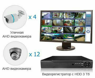 Типовое решение — 16 видеокамер, монитор, регистратор с HDD 3 Тб