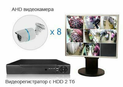 Типовое решение — 8 видеокамер, монитор, видеорегистратор с HDD 2 Тб
