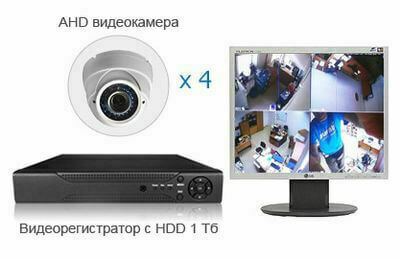 Типовое решение — 4 видеокамеры, монитор, видеорегистратор с HDD 1 Тб