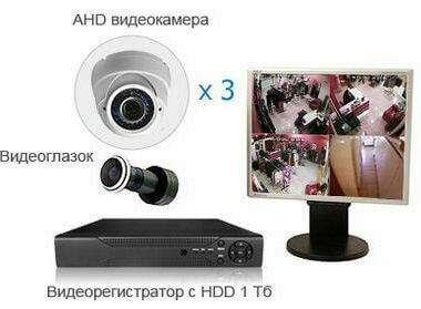 Типовое решение — видеоглазок, 3 камеры, монитор, регистратор с HDD 1 Тб