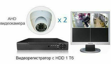 Типовое решение — 2 видеокамеры, монитор, видеорегистратор с HDD 1 Тб