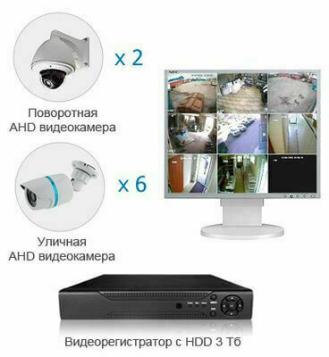 Типовое решение — 2 поворотные, 6 уличных, монитор, регистратор с HDD 3 Тб