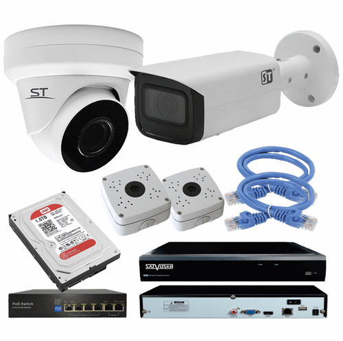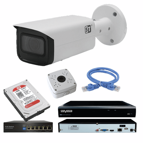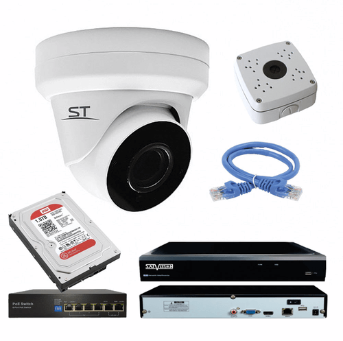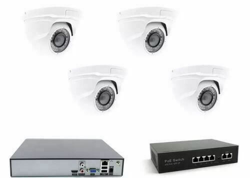 Готовый IP комплект видеонаблюдения – это оптимизированная система, которая, как правило, в стандартном варианте, состоит из видеорегистратора, одной или нескольких видеокамер, коммутирующего устройства, монтажного комплекта и сопутствующих материалов. Запись ведется на жесткий диск, установленный в видеорегистраторе или на карту памяти . Просмотр видеокамер может осуществляться при помощи смартфона, планшета, компьютера или локально, через подключенный монитор.