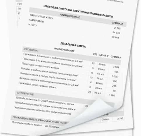 Стоимость услуг элекрика зависит от типа объекта , сложности монтажа, протяженности сетей, применяемого оборудования и материалов. Для точного расчета стоимости, отправьте заявку на обследование и замер объекта.