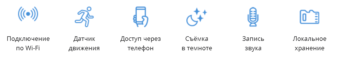 Цифровая двухмегапиксельная камера с разрешением 1920x1080, комплектуется POE инжектором для передачи питания и видеосигнала по одному кабелю. Возможно подключение по беспроводной сети WI-FI. Запись ведется в облачный сервис и на карту памяти.